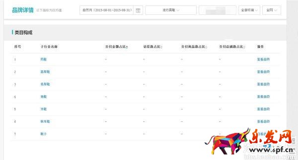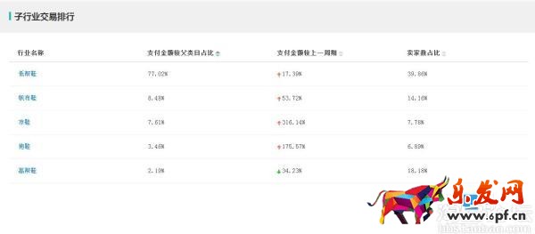 子行業的交易排行絕對是對葉子類目的一大福利,特別是 支付金額較上一周期 這個數據,包括買家數占比,可以清晰的告知我們當季最熱的子行業和競爭情況,這里列出了支付金額較父類目占比、支付金額較上一周期、賣家數占比,所有菜單都是按照百分比來展現的,清晰得知每個葉子類目的情況。