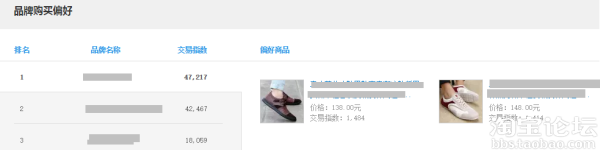 這里重要的數據就是訪客數,可以在搜索框里找到自己品牌,然后看自己的訪客,也可以直接看行業的排名,也是可以看到他們的熱銷店鋪和寶貝,可以多參考,多學習。