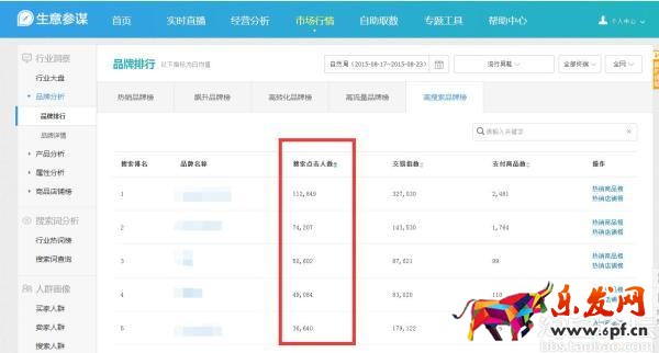 這里重要的數據是搜索點擊人數,從這里可以看到搜索點擊,也是可以在右上角搜索框查詢自己的品牌,這些數據都是按統計維度去重的,是非常準確的。