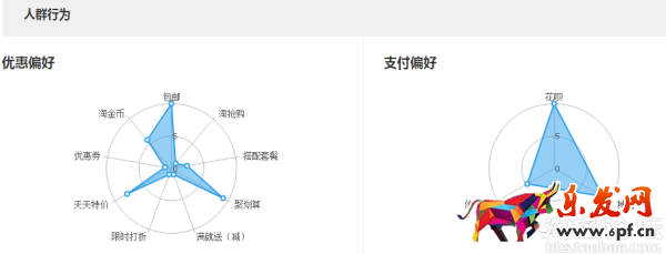 搜索人群方面,根據設置的搜索關鍵詞,進行搜索關鍵詞的人群分析。從各類目搜索點擊人數分布為主要維度,對人群屬性進行詳細的分析,主要包括性別占比、職業占比、近90天支付金額、年齡分布、省份分布、城市分布等進行多角度展現搜索人群特征。人群行為分析方面,有優惠偏好和支付偏好的分析。另外還有品牌購買偏好以及類目購買偏好等。