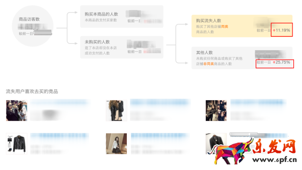 下圖為這款寶貝的購買流失分析,因為數據問題,沒把具體數值放出來,但是占比來看,流失率每天都在提升;且競爭情報同時提供了流失用戶都喜歡去買的競品。