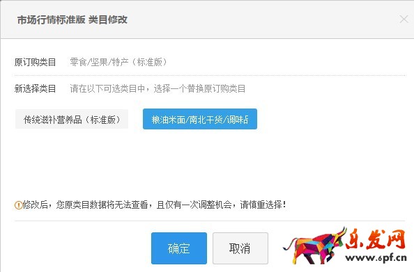 市場行情類目變更功能已經發布上線,每個訂購市場行情的訂單在服務周期內允許進行一次自助變更類目,請注意僅有一次調整機會。請各位掌柜慎重操作。