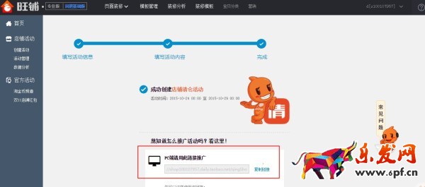 第三步:選擇pc端“清倉活動”先創建一個淘清倉的優惠活動