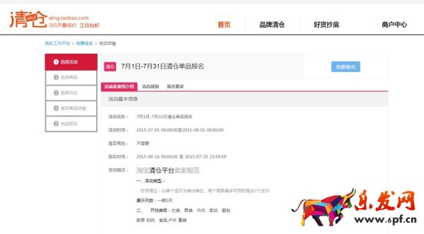 進入清倉賣家中心,http://tqcfreeway.ju.taobao.com/qing/index.htm,點擊“我要報名”