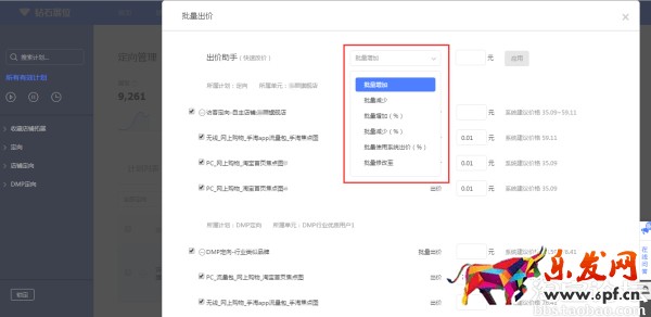 鉆石展位計劃界面提供定向、資源位、創意的快捷修改入口,不需要再逐個點擊計劃、單元進去修改。