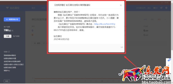 重要通知一般發送鉆石展位賬戶違規、處罰、規則變更等消息,非常重要,請務必仔細閱讀。