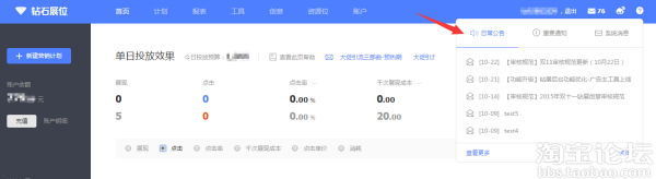 鉆展后臺首頁默認展示的就是日常公告喲。