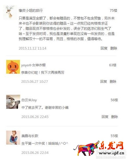 從最初我們的蓋樓活動有粉絲認為我們作假,到現在每次活動發獎沒中獎他們會漸漸淡然并稱下次努力等,甚至在新粉絲不了解我們的情況下有些謾罵等,有些粉絲會主動微淘去回復幫我們解釋(這種回復比我們自己回復更真實有效)。下圖就是部分微淘樓層的截圖哦~