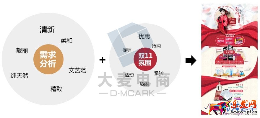 當看到要先為頁面定位時,相信很多人都納悶了,“雙11定位還要多想嗎,肯定是促銷、喜慶啦”。當然,促銷和喜慶是固然的,也是我們雙11活動的主要基調。然而,要從千軍萬馬中先拔頭籌,我們一定要靜下心來,理性分析店鋪的定位與用戶需求,盡可能將這些需求通過具象的詞表現出來。并與雙11的促銷氛圍有機的結合,形成有店鋪特色,有情感的雙11落地頁,在滿足用戶想要優惠的理性需求的同時滿足用戶的情感需求。