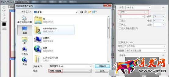 第五、然后把文件存儲為jpg格式的文件,要注意的是各位為HTML和圖像,如下圖。切片完成后,保存的圖片不需要每張保存,它會自動生成一個文件夾。
