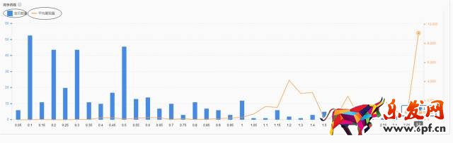 大家看下面這張圖,這里一共有3個軸,左邊這個軸是從0到60,下面這個軸是從0.05到2.7,右邊這個軸是從0到10000。那么我們來對應一下。這個0-10000指的是什么呢,這是一個平均的展現數量,0.05到2.7這個代表平均出價,大家注意一點。這里的出價并不代表排名。我們可以發現,出價2.7的寶貝只有一個,他獲得的平均展現是9090。這意味著,出2.7大概9090展現,寶貝數量1個,那就是沒有商家和他競爭。但換過來,假如我出價1.15,1.15這樣的一個展現,再考慮上競爭的商家數量,我可以估算出我出價1.15會有多少的展現量,或者說根據這個我們去調整自己的出價就會有不一樣的結果。而反過來。如果我們保持2.7價格一直不去動它反而展現量會下降。所以說不一定是出價越高效果就越好,出價越低效果就差。