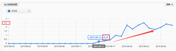 從上可以看出,這款產品,在一開始的點擊率只有0.2左右,經過四五天的優化,點擊率達到了2.5以上。