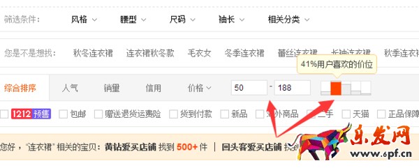 除了參考別人網(wǎng)店的價格,賣家還可以在淘寶搜索價格范圍,如下圖。