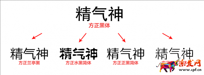 方正黑體系列,雖然他們?cè)谕庑魏透杏X(jué)上會(huì)有很多的不同,但他們都屬于黑體系列,因?yàn)樗麄冇泄餐阁w方正黑體——這就是他們的字精。