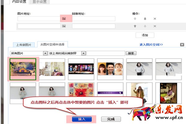 3、如下圖,點擊紅色那個圖標(biāo),將會彈出圖片空間,在圖片空間中選擇想要的圖片,最后點擊確認(rèn)即可。