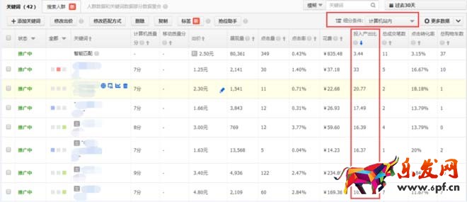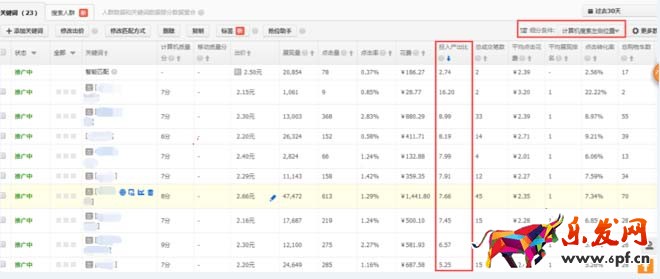 怎么看數據這邊就不多講了,我們可以通過過去30天的左側數據,你可以很明顯的看到,哪些詞在左是可以獲取到非常不錯的轉化率和ROI的,至少通過這個數據,你就可以選出一部分的關鍵詞出來了。