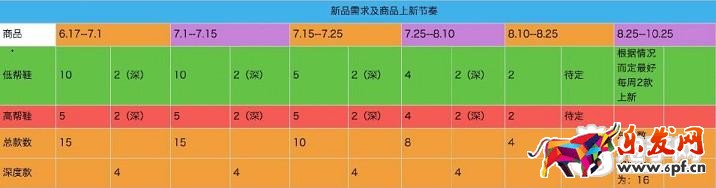 3.低幫鞋的商品籌備時間為:6.17——7.15 高幫鞋:6.17——8.10 棉鞋、雪地靴:9.10——9.20