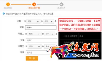 3、激活支付寶,設置三個安保問題。在填寫身份證信息的時候,要注意資料的真實性,因為淘寶系統也不是那么容易忽悠的。