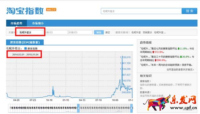 首先打開淘寶指數(shù),搜索毛呢外套女,這里截取的時間比較長。從這個走勢圖我們可以看出毛呢外套女可以賣多久,這個時間還是比較長的。