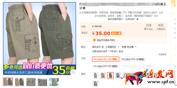 1、定價:店鋪的的客單價在60元左右,面對消費者是花費水平適中,要求性價比較高。而且店鋪夏款上新也是在四月份,首先夏季主打款和選擇推廣的是單較價較低的35元包郵的中老年爸爸裝短褲。在產品的主圖上也有體現,在市場中會更加有價格優勢。