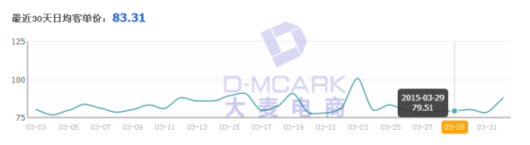 從圖中反饋店鋪的客單價雖然有所波動,但是整體來說還是比較平穩(wěn)。但是,不要以為這樣就沒事了。客單價跟寶貝的定價有直接的關(guān)系。
