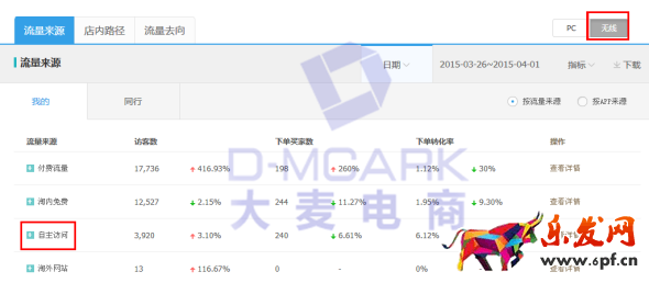 而且無線端的老客戶占比排在第三的位置,無線端本來就是維護老客戶的重要工具之一,正常來說這種等級的自主訪問流量在無線端應(yīng)該是排在第二以上的位置的。