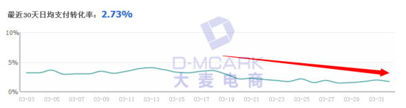 通過生意參謀近30天的轉(zhuǎn)化率數(shù)據(jù)反映,店鋪的轉(zhuǎn)化率從3月19日開始下降。看到這樣的數(shù)據(jù),首先要分析這轉(zhuǎn)化率是PC端還是無線端影響到的。