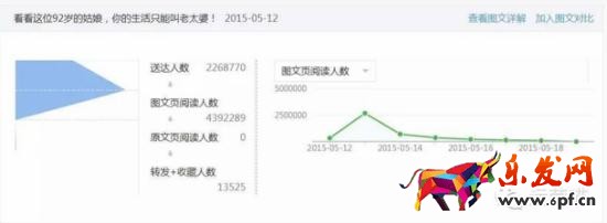數(shù)據(jù)分析:這篇文章達(dá)到400萬(wàn)+的閱讀量,是當(dāng)時(shí)粉絲數(shù)(200多萬(wàn))的2倍,可見(jiàn)迅速引爆朋友圈帶來(lái)大量的分享。