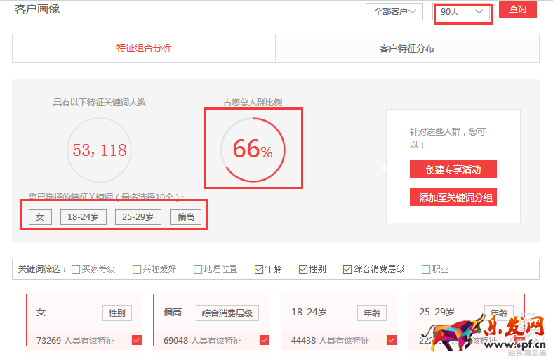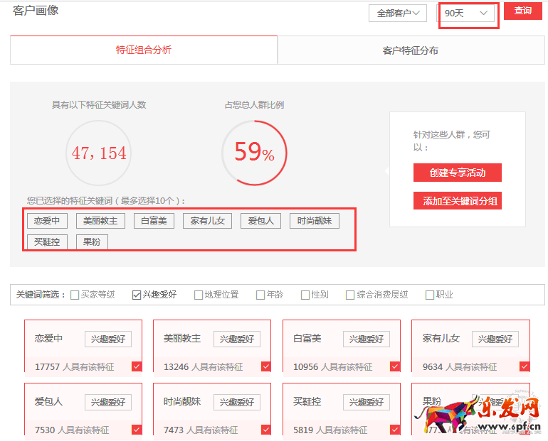 打開會員營銷中心,在客戶畫像中可以看出,店鋪主要面對的人群居多為18-29歲的年輕女性,且在綜合消費層級中屬于偏高的水平,相對來說是具有一定的購買力,在興趣愛好中,我們可以看出在客戶群體中,“戀愛中”“美麗教主”“白富美”“時尚靚妹”等人群居多,此部分人群對自己的裝扮會比較關注,注重外在形象。
