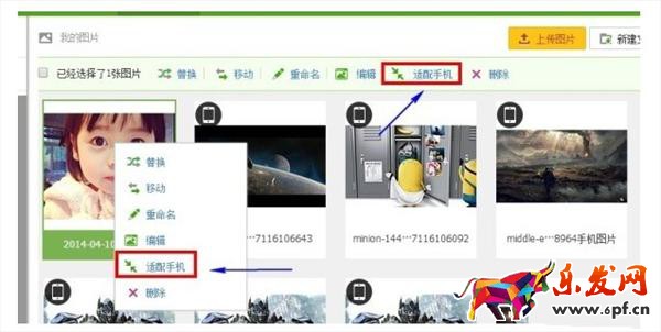 跟著系統會將圖片進行自動的適配。而適配好的圖片,在其左上角都會有個小手機的標識。很容易識別的。