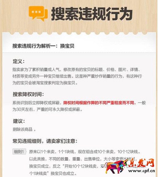 除了店鋪內部問題外,淘寶規則變化也要時刻留意,每一次規則的變動并非“臨時工”。往往在店長不知情的情況下,無意的改動觸犯了淘寶規則,對店鋪進行違規處理,比如:放錯類目、商品描述不符、淘寶刷單、標題堆砌等,扣分、降權接踵而來。