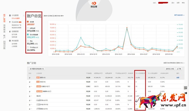 從上圖可以看出,僅淘寶客帶來的點擊量295357,平均每天1萬左右(不含店鋪其它流量),僅淘寶客帶來成交金額35.55萬元。第一個月剛接店鋪分析了下,寶貝價格具有性價比,所以聯系了一些淘客推廣,這方面淘客比較好推一些,所以這個月定向推廣效果還不錯;其次聯系了淘粉吧等外站平臺,一個月引入1600筆成交,還有走通用的一些外站平臺,效果都挺好;如意投方面暫時引入不是很多,但是個數據積累階段。第一個月主要是通過一些基礎性的淘客和外站平臺來推廣,引流渠道并沒有完全發(fā)揮出來。