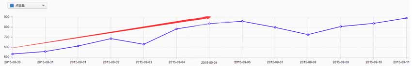 點擊轉化率剛開始時并不高,與前7天的數據對比沒有很明顯的變化,幾乎是持平;不過總體上是有小幅的增長的,這其中的一個原因也是受到了流量波動的影響導致的,總體上是有些波動,后期在通過調整優化,盡量穩定寶貝關鍵詞的展現,以高匹配的長尾詞為主,以提高流量的精準度,從而促進轉化。