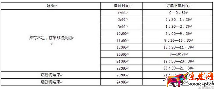 從圖中可以看出訂單的高峰期主要在集中在0-2點、9-12點和晚上20-24點。所以,一般情況下2-9點的催付效果是最差的,因為這段時間主要是睡眠時間;其次是晚上17-19點。催付話術如下:親,拍下付款成功之后,系統自動減庫存,未付款的寶貝不做預留,建議您盡快完成付款,以免因為斷貨造成您的遺憾哦~!本店的商品都是限量出售,售完不補貨哦!