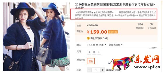 但是,在這里這些我們都不考慮,我們只考慮頁面停留時間的影響。四張圖片,實際上給我們的感覺是不一樣的:第一張圖片,寫的一堆東西,我相信大多數人可能會有一樣的感覺,不想看,這樣就是浪費了時間,沒有任何效果;第二張圖片,也寫了一堆東西,但是我們注意到了三個關鍵詞,所以停留的時間長了一些。“新品熱賣”、“女神冬季必備”、“現在拍下申通包郵”,因為這三個用了一個特殊的符號標注了一下;第三張圖,我相信就會有一部分人讀完了,尤其是小女生們,因為是很口語化的語言,跟你“面對面”去介紹這款衣服,頁面的停留時間會更進一步的延長;第四張圖片呢?效果是不是更好?