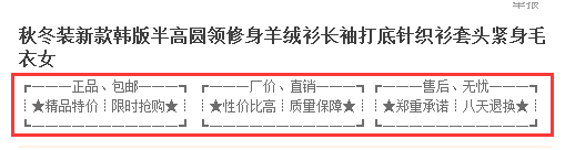 所以建議是什么?如果你想寫寶貝賣點,就要讓他發揮一定的功效,至少在頁面停留時間上,作用要體現出來,你寫了就要有人去看。那么,想讓人看,要注意那幾點呢?第一:不要拼湊,真正的把賣點提煉出來,然后或者分條列示,或者用特殊的符號標明,要讓瀏覽者一眼就能注意到,只有注意到才會閱讀;第二:盡量用符合用戶閱讀習慣的語言,語氣等;第三:語言簡練,有分隔符。