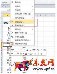 2、選擇有價格的一個單元格,右鍵店家創建組