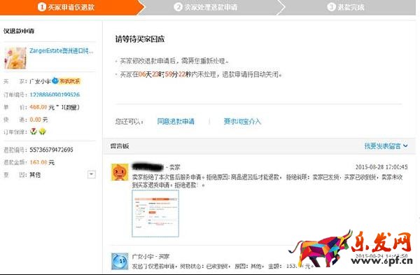當客戶收貨后,發起了退款申請,理由選了個其他,我們已經提前支付了刷單費用,這一看就是訛錢的,很多店長遇到這樣的,多數會選擇給錢了事,但是我們當時有快遞底單,因此決定抵抗一下,拒絕了對方的退款: