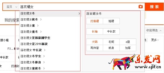左邊關鍵熱詞,右邊屬性詞,隨便組合就已經能組合出很多新詞了,每一個熱詞都有對應的熱門屬性詞,而且如果我覺得連衣裙女冬這個詞很不錯,我還可以繼續搜索連衣裙女冬來進一步獲得長尾詞,其他類目也是一樣。