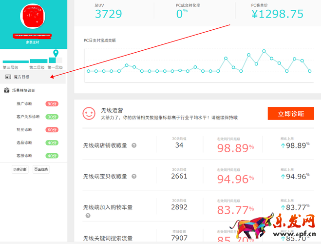 二、推廣診斷:(主要是對應于店鋪流量的與同層級同行的對比,PS:但是總感覺這部分的數據不是很準確、不要在意這些細節~)