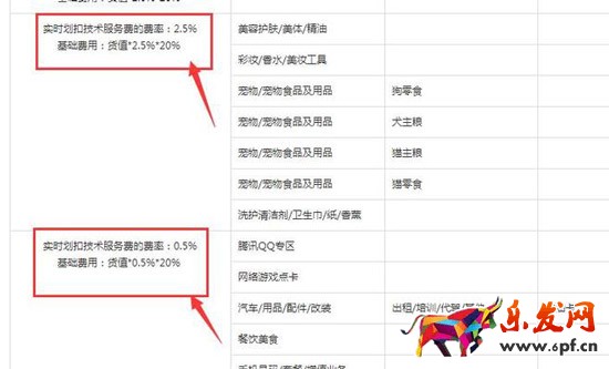 每個類目都有對應的技術服務費和基礎費用。如圖所示,基礎費用=貨值*2.5%*20%。