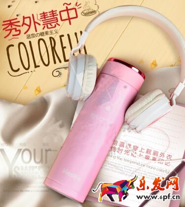 將產品賣點進行文案的提煉,統一出能貫穿所有賣點的關鍵字,再進行潤色處理,如下圖將產品的賣點“風尚‘菱’度距離”、”體驗繁瑣歸‘菱’“、”設計‘菱’巧貼心“,很好地將杯型的菱格與每個賣點進行文案的結合,巧妙且恰到好處。