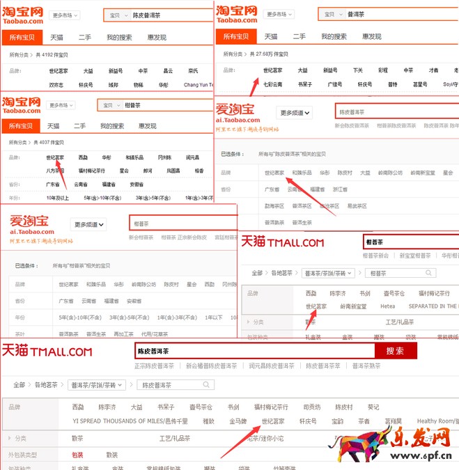 我曾經跟大家介紹過一個店鋪,他的品牌叫【世紀茗家】一個月的時間,在淘寶,天貓,愛淘寶上面的品牌篩選全部站位,從去年9月份開始操作的。如圖: