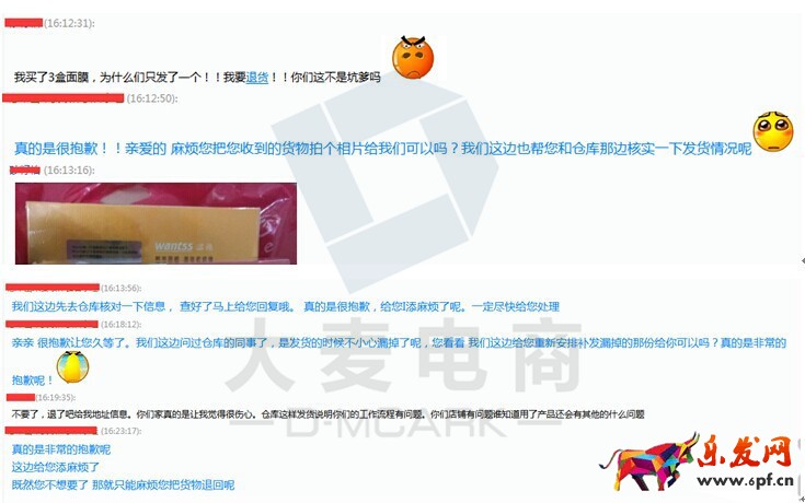 這個案例中,客服的處理方式可以參考一下。建議使用換貨、補發的手段盡量減少退款。確定要退款的客戶不要在糾纏,容易讓客戶誤以為不愿意退款,引起客戶反感。所有因為賣家方面出錯而導致的退換貨,都要嘗試去挽回客戶對店鋪的信任。而非消極被動的處理。和客戶協商退貨還是換貨的時候,要聽取客戶的意見,共同商討解決方案。并不是按照客服自己的意愿去直接敲定方案。