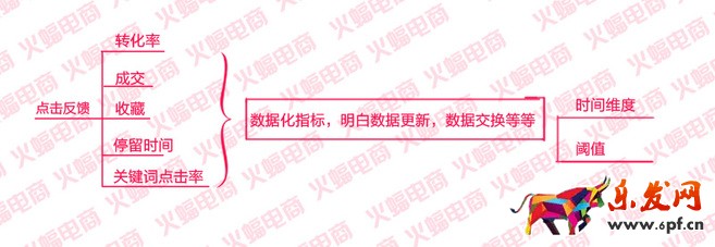 如圖,影響點擊反饋的主要指標有:轉化率、收藏率、停留時間、關鍵詞點擊率、加購率。