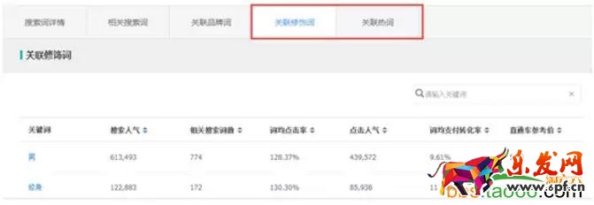 搜索后,點擊相關搜索詞,一般情況下,生意參謀會圍繞這這個主詞推薦500個長尾詞,但是這時候只是長尾詞,黃金不黃金,需要數據的判斷。