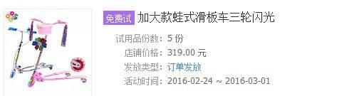 如:2.19報名三輪蛙式滑板車,考慮到剛剛過完年,對市場預(yù)估不準確,選擇庫存100個,計劃當日銷完。活動價89元。