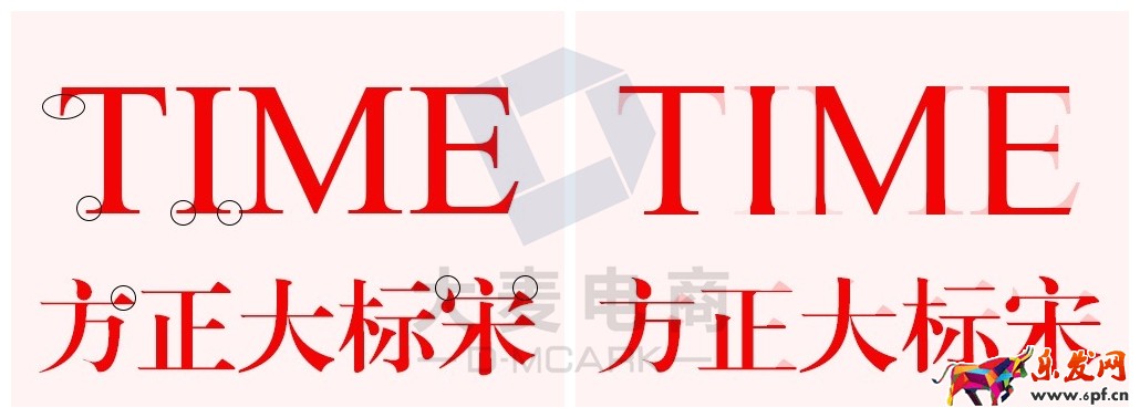 調整前 調整后例如我們常見的英文字體 Times、Times New Roman中文字體中的方正大標宋等字體等就屬于襯線字,而像Arial、helvetica方正蘭亭黑體 方正大黑體等就屬于無襯線字。