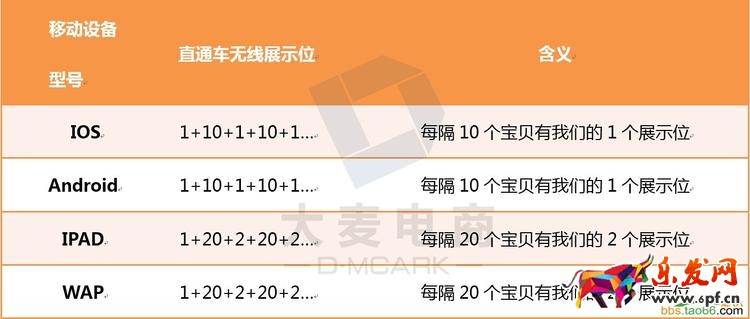無線直通車的展現位置包括無線頭條&無線混排。無線混排機會的位置,是指手機淘寶搜索關鍵詞排名非第一位的位置。每隔10或者20個自然搜索的寶貝,就會有1或者2個帶hot標的直通車無線寶貝。(即混排位置)