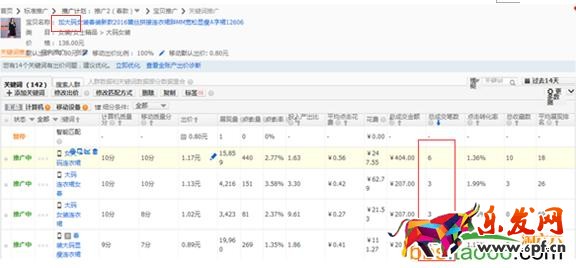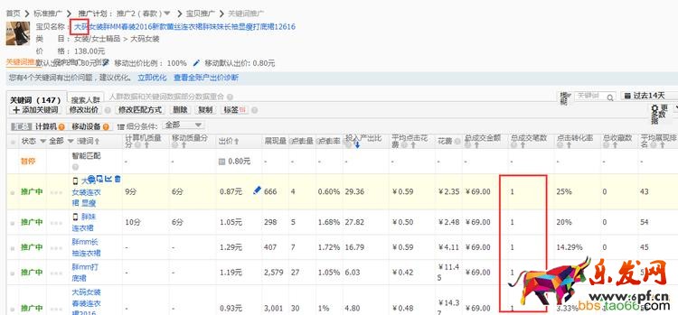分析:(1)從寶貝的一個標(biāo)題上可見,寶貝主要以大碼女裝為主的,因此在添加關(guān)鍵詞上,以“大碼”和“胖mm”這2個方面進(jìn)行添加。(2)從寶貝的一個關(guān)鍵詞上看,能夠成交的關(guān)鍵詞是較多的,但是這些關(guān)鍵詞的成交筆數(shù)都是較少且存在偶然情況。